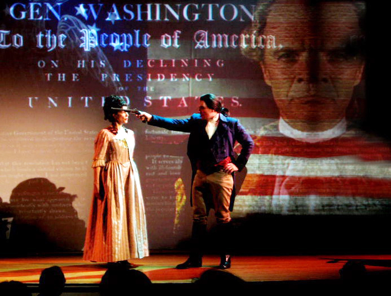 Using only Hamilton’s own words, the play brings his story to life through two live actors interacting with life-size video projections of figures such as Jefferson and Washington—creating a dynamic fusion of performance and technology.